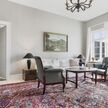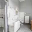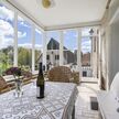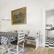 Denne udlejningsdel er i to plan. Stueetagen indeholder en pejsestue, en tv-stue, et køkken, en spisestue, entre med adgang til et badeværelse samt et soveværelse med dobbeltseng og eget badeværelse. Boligen indeholder på førstesalen 2 soveværelser med dobbeltsenge. Værelserne er individuelt indrettet, men med fin udsigt over mark og skovområderne. Der er også vaskerum med vaskemaskine i kælderen. Gæsterne i denne lejlighed har adgang til en afmærket del af parkområdet. Denne lejlighed er smagfuldt indrettet og med et smukt farvevalg på vægge mm. Vi skal gøre opmærksom på, at lejlighederne er adskilte med en stor hall, gæsterne har egen indgang.