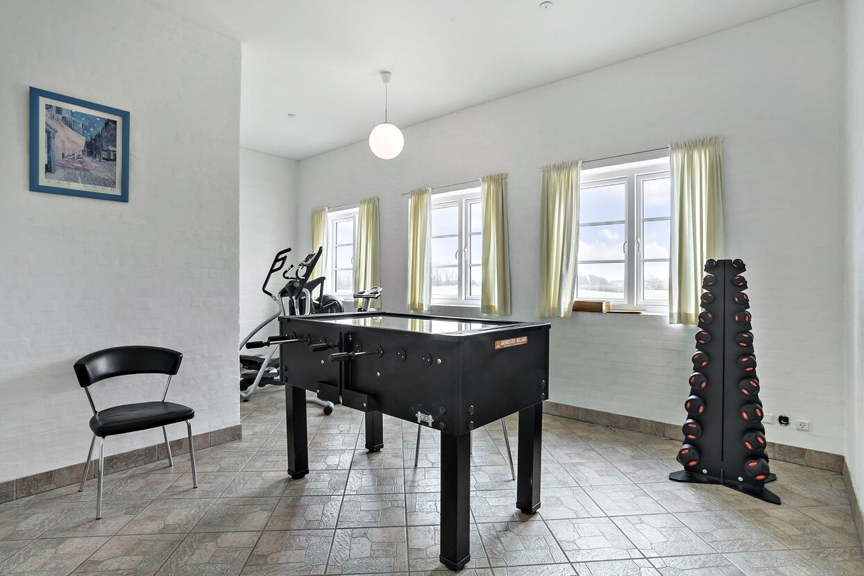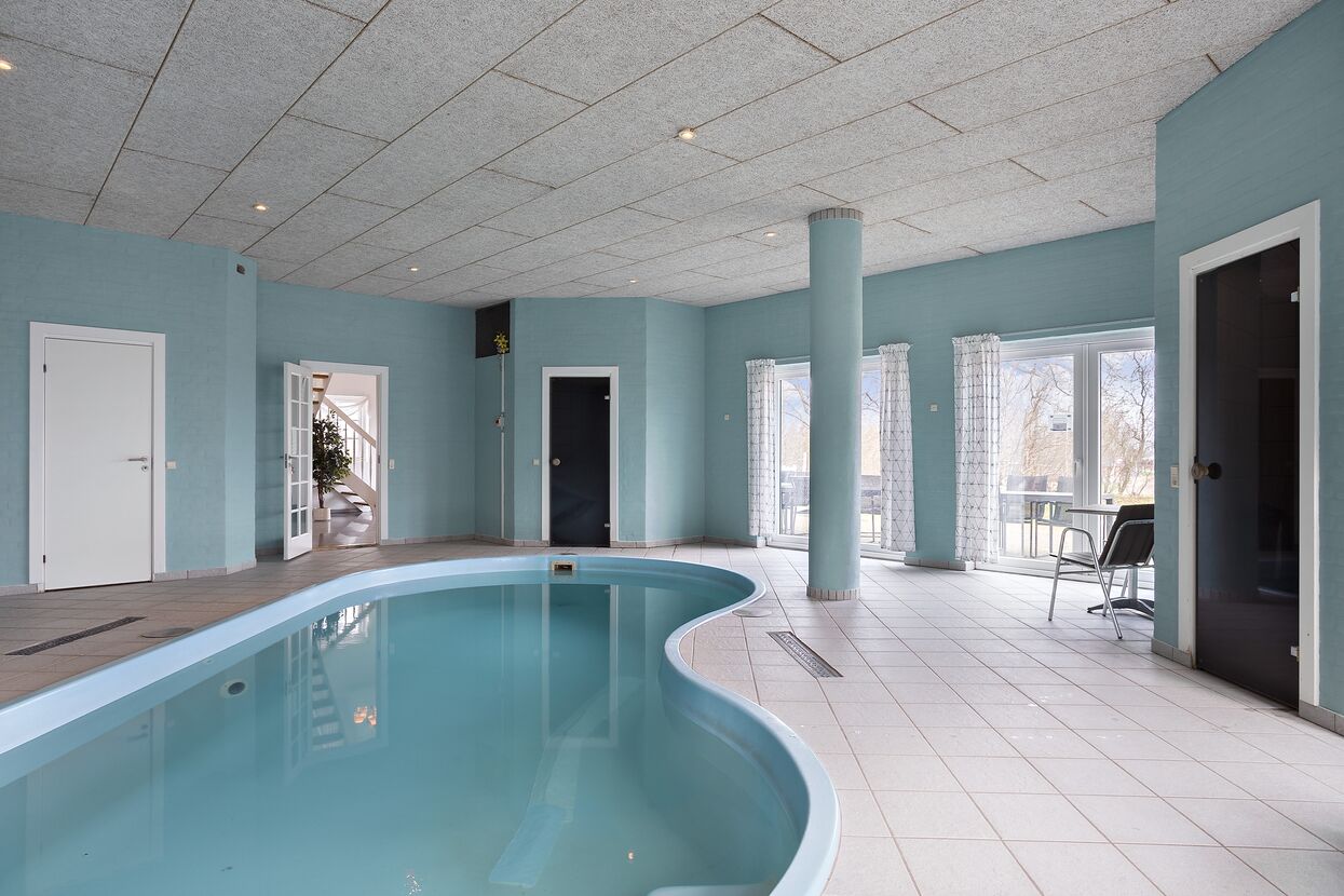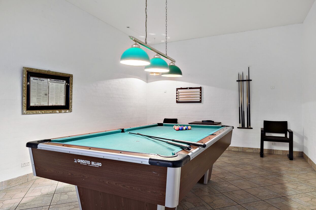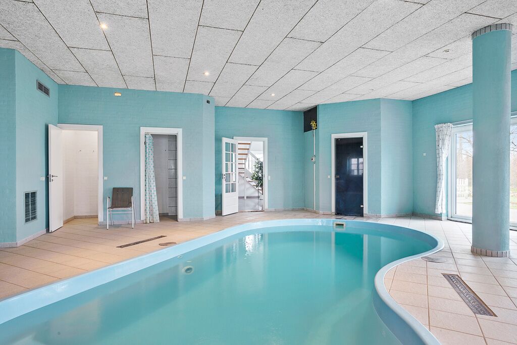 Auf diesem 750 m2 großen Landsitz können Sie einen erholsamen Urlaub verbringen. Das Haus wurde 2005 gebaut und liegt in ruhiger Umgebung in dem kleinen Dorf Farris 75 km von der deutsch/dänischen Grenze. Zu Ihrer Verfügung haben Sie 11 Schlafräume mit eigenem Badezimmer. 2 Zimmer liegen im Erdgeschoss, die restlichen im 1. Stock. Der 100 m2 große Poolraum ist eingerichtet mit 28 m2 großem Swimmingpool, Whirlpool für 8 Pers, Sauna und 2 Bäder. Nebenan befindet sich ein großer Fitnessraum. Das Wohnzimmer ist mit einer großen Sofaecke, Tischtennis und Billard eingerichtet. Unmittelbar neben dem Wohnzimmer befindet sich die große Küche. Im 1. Stock befinden sich 2 Wohnzimmer. Bringen Sie Ihren eigenen Computer mit, denn Sie haben freien Zugang zum Internet. Draußen können Sie die Ruhe genießen auf der großen Sonnenterrasse.