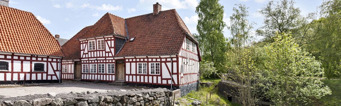 Die Mühle von Hybæk ist mit ihrem Reetdach, dem Hof mit Kopfsteinpflaster und dem roten Fachwerk der Inbegriff von echter dänischer Fachwerkidylle. Heute gehört der aus drei Gebäuden bestehende Mühlhof zum Gut Wedellsborg, und es ist möglich, das Haupthaus zu mieten. Ursprünglich war die Mühle von Hybæk eine Wassermühle. Deshalb kommen die Bewohner der Mühle von Hybæk auch in den Genuss des Anblicks des Mühlenflusses, der sich durch den weitläufigen, parkähnlichen Garten schlängelt, zu dem auch ein Freisitz und ein kleiner See gehören.