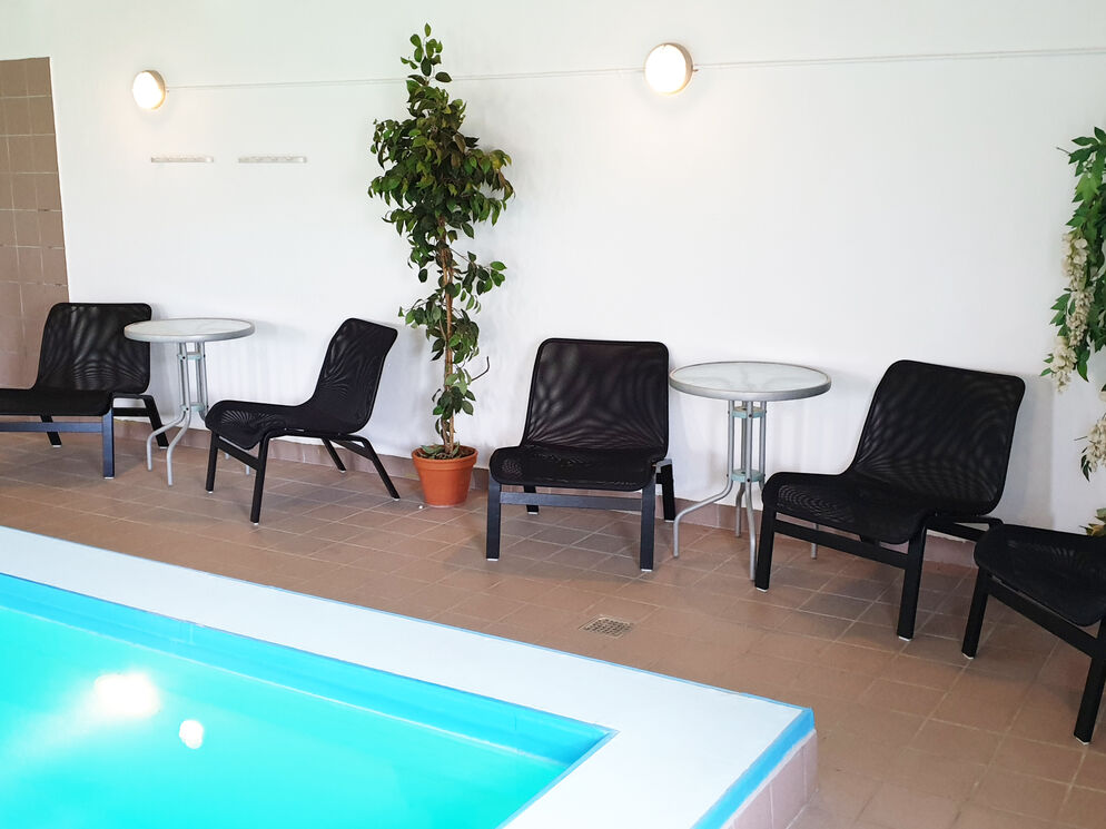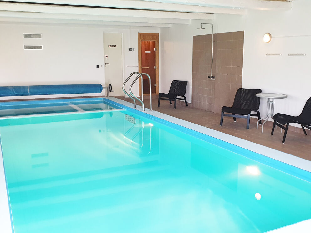 Dieses gemütliche Ferienhaus bietet Platz für 20 Personen. Besonders erwähnenswert sind der Indoorpool und die Sauna im angrenzenden Nebengebäude. Das Erdgeschoss umfasst einen großen Wohnraum mit Essbereich und Kamin sowie eine große und gut ausgestattete Küche. Hinzu gesellen sich ein weiterer Wohnraum mit Kamin, Billardtisch und Tischkicker sowie drei Schlafräume und ein Badezimmer. Im ersten Stockwerk erwarten Sie sieben Schlafräume und vier Bäder. Das angrenzende Nebengebäude mit Pool, integriertem Whirlpool und Sauna verspricht viele vergnügte und entspannte Stunden. Zum Haus gehört ein großes Außengelände mit Feuerstelle und viel Platz für Ballspiele. Dieses Haus eignet sich hervorragend für eine große Familie, ein Familientreffen oder für den Urlaub mit Freunden.