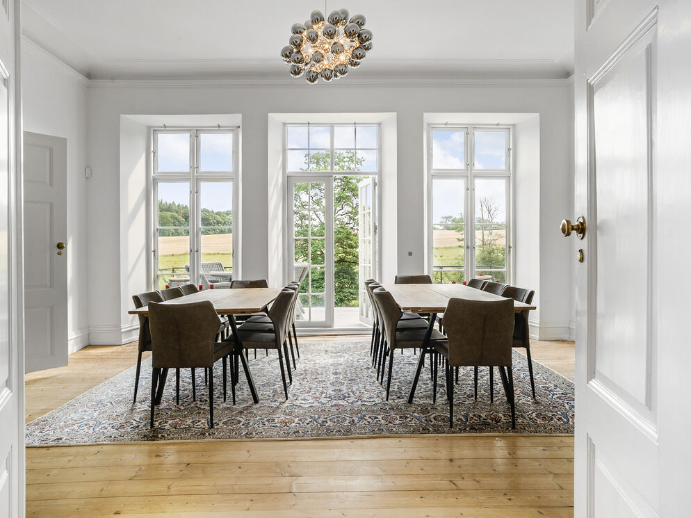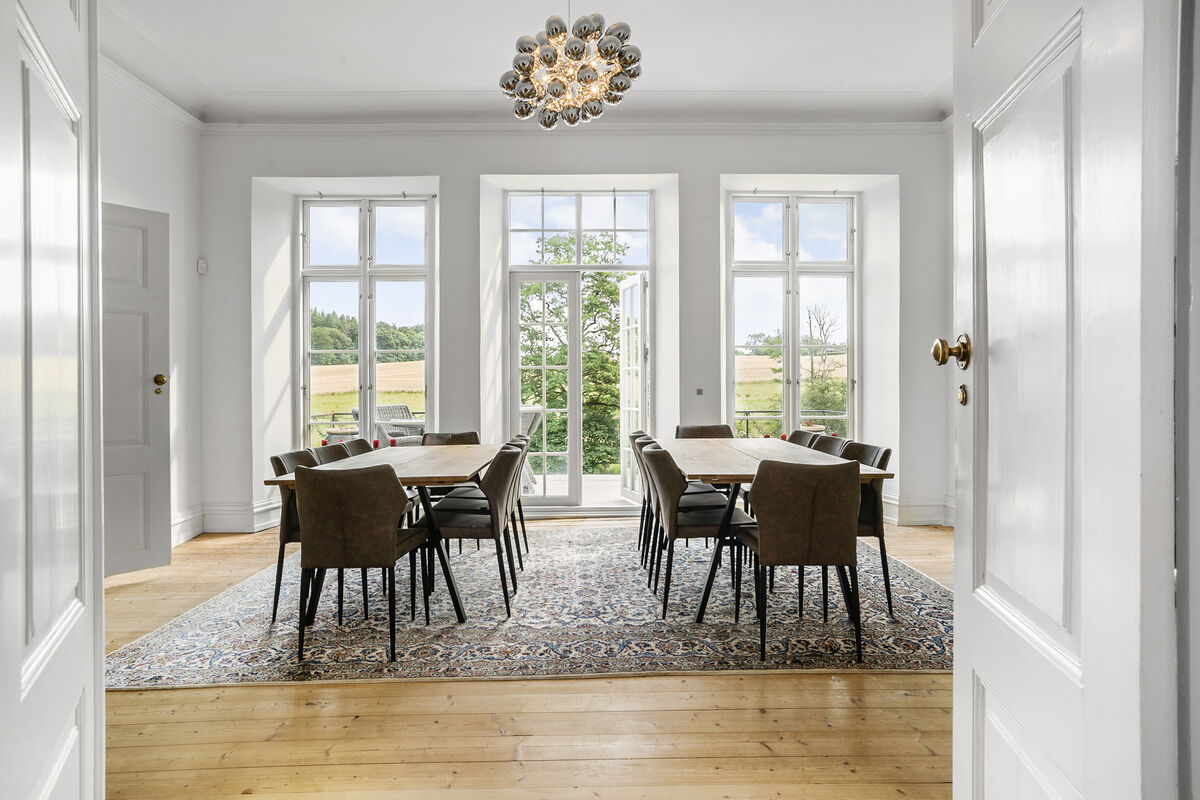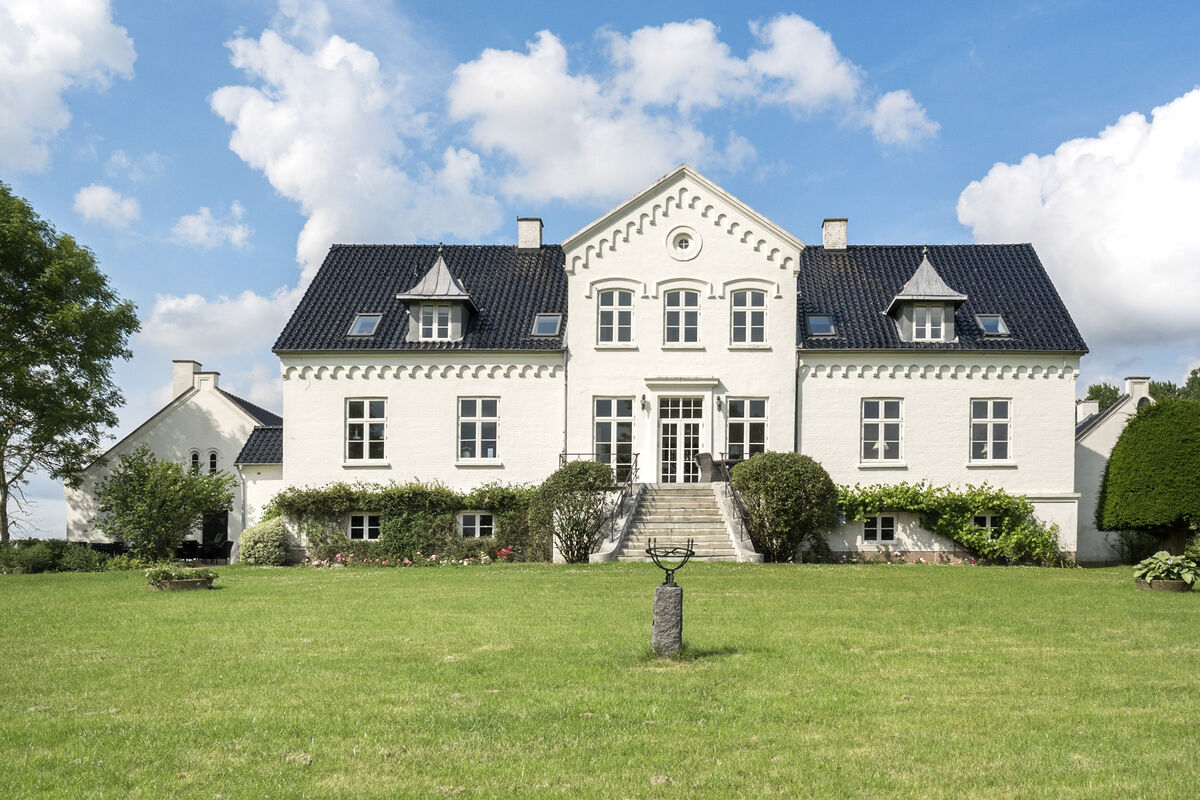 The whitewashed manor of Hvolgaard Hovedgaard is beautifully situated on a small hill in the Ølholm valley where today’s three-winged manor is surrounded by an equally beautiful Danish landscape. The details of the buildings and the light expression make the estate appear stately, classic and elegant.