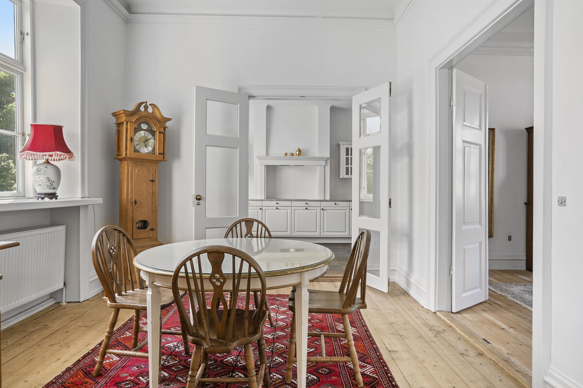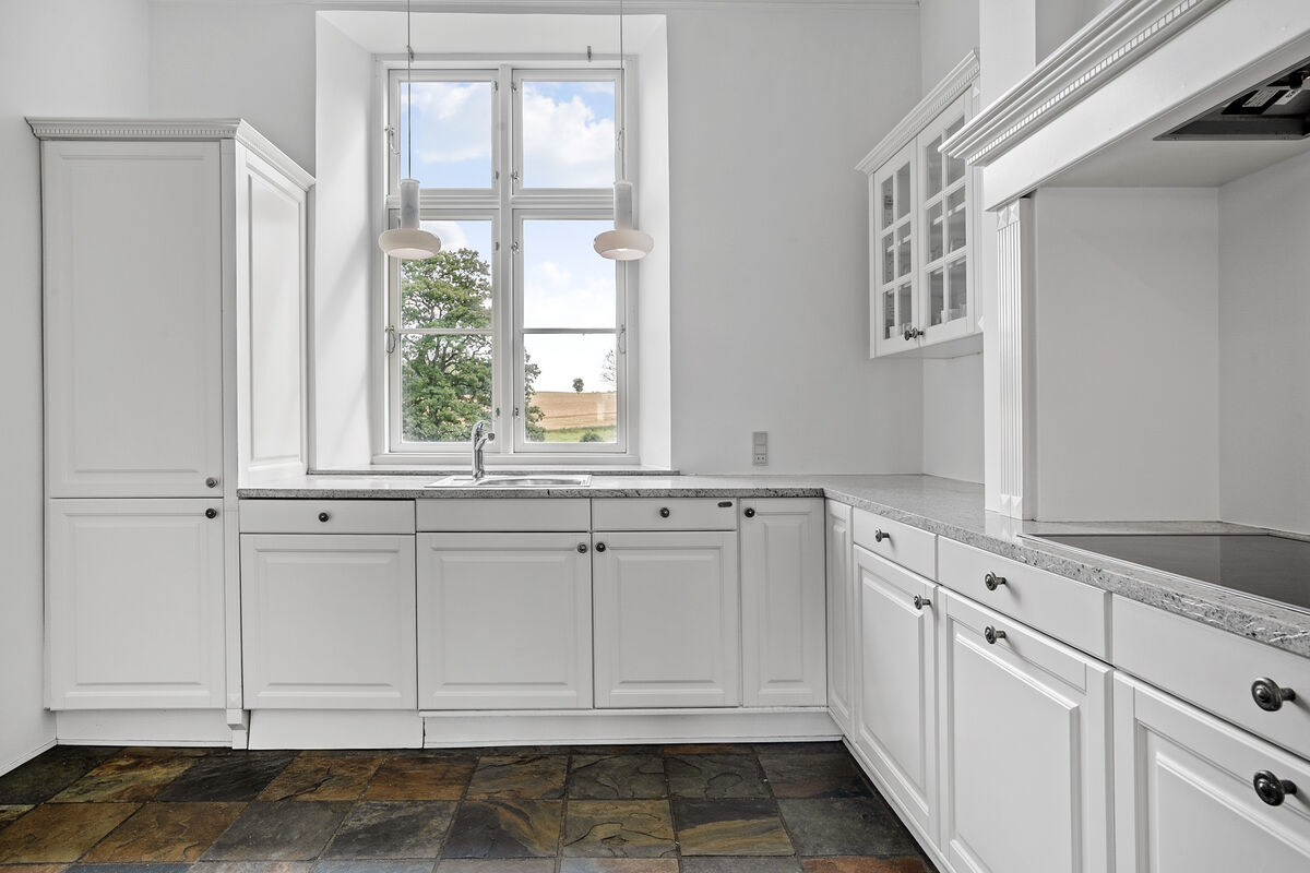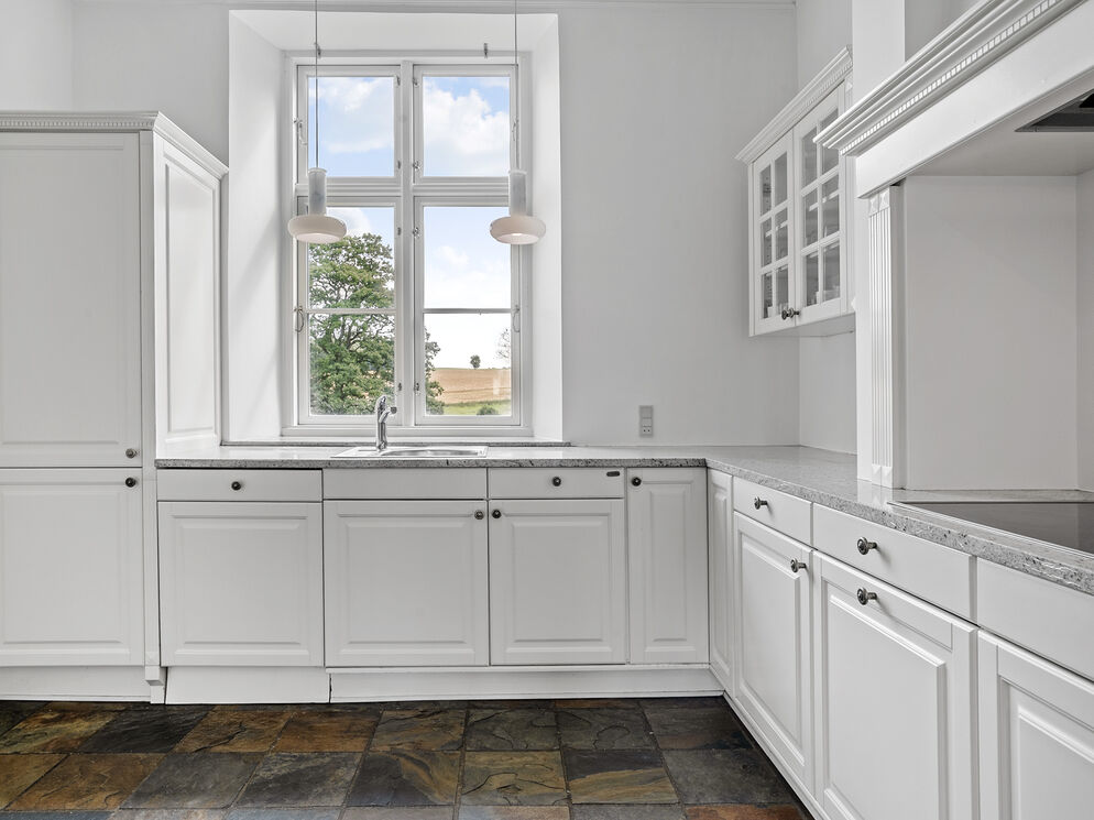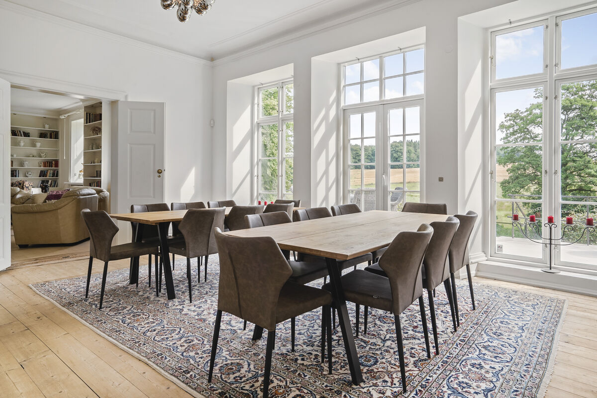 The whitewashed manor of Hvolgaard Hovedgaard is beautifully situated on a small hill in the Ølholm valley where today’s three-winged manor is surrounded by an equally beautiful Danish landscape. The details of the buildings and the light expression make the estate appear stately, classic and elegant.