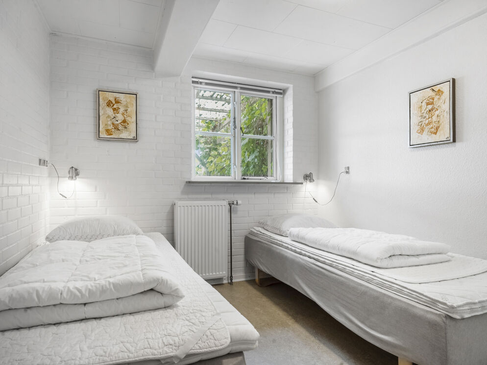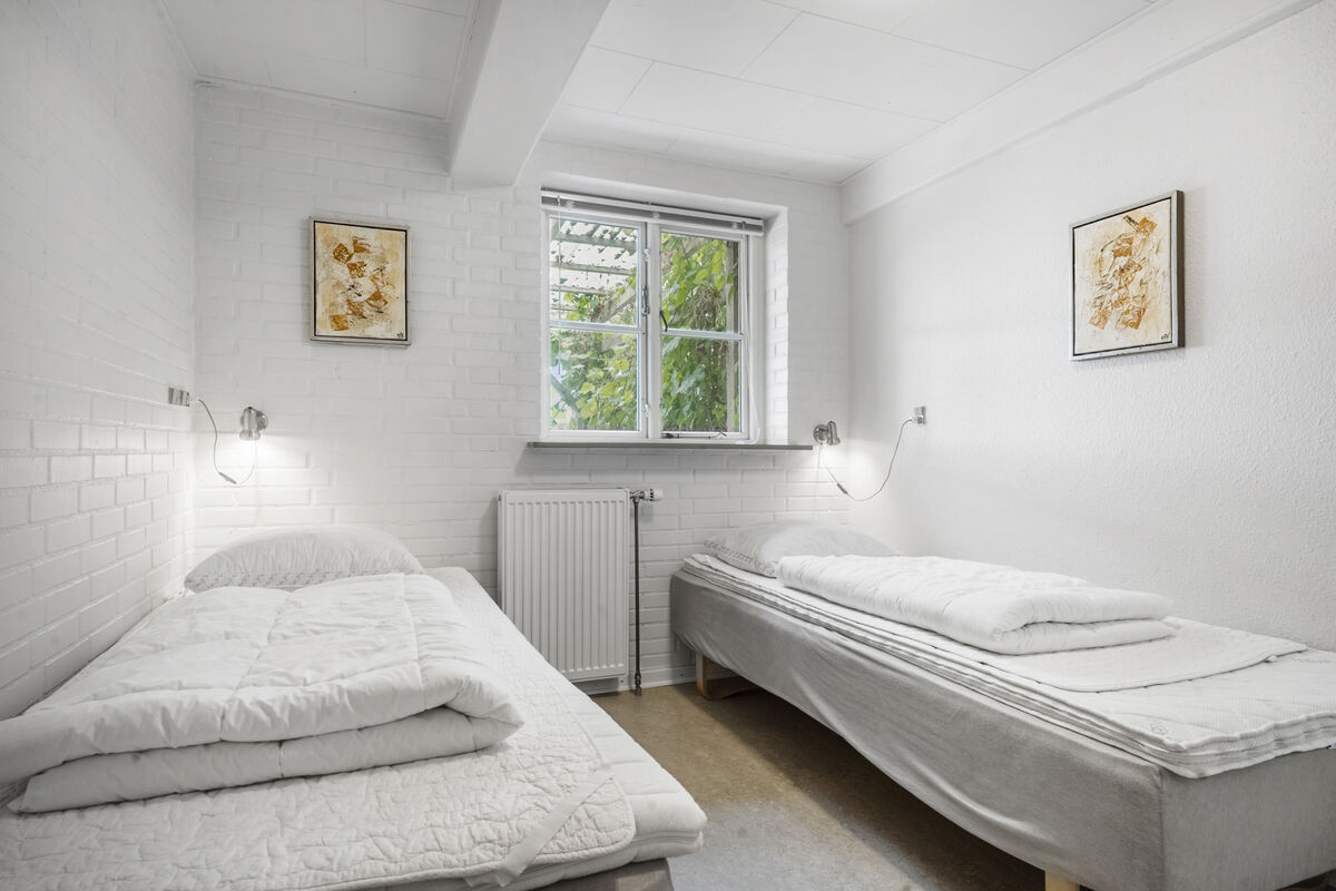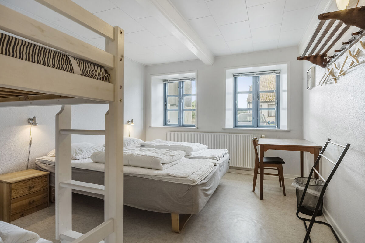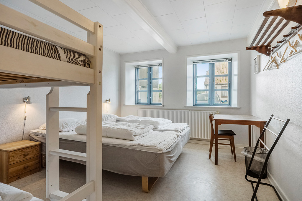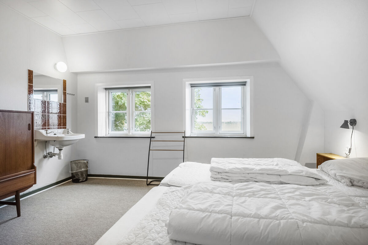 Feriehuset Brunsnæs Kro har 15 soveværelser, hvoraf de 5 af dem ligger i stueetagen – her finder du også 3 badeværelser samt 3 gæstetoiletter. De resterende 10 soverum ligger på 1. sal, hvor der også er 2 badeværelser.