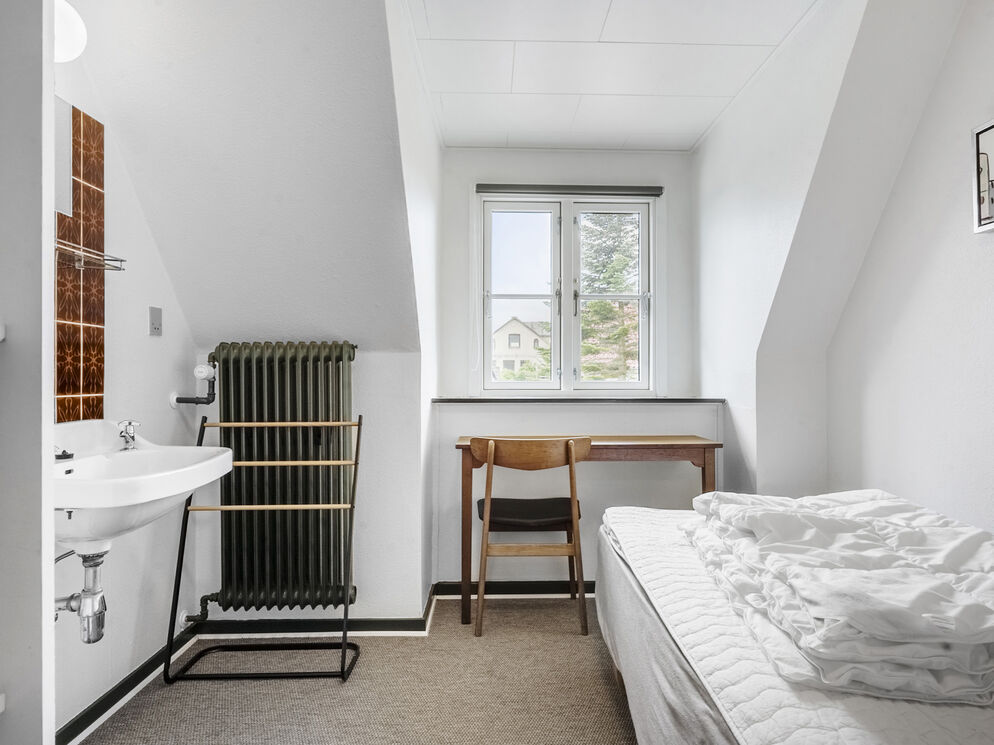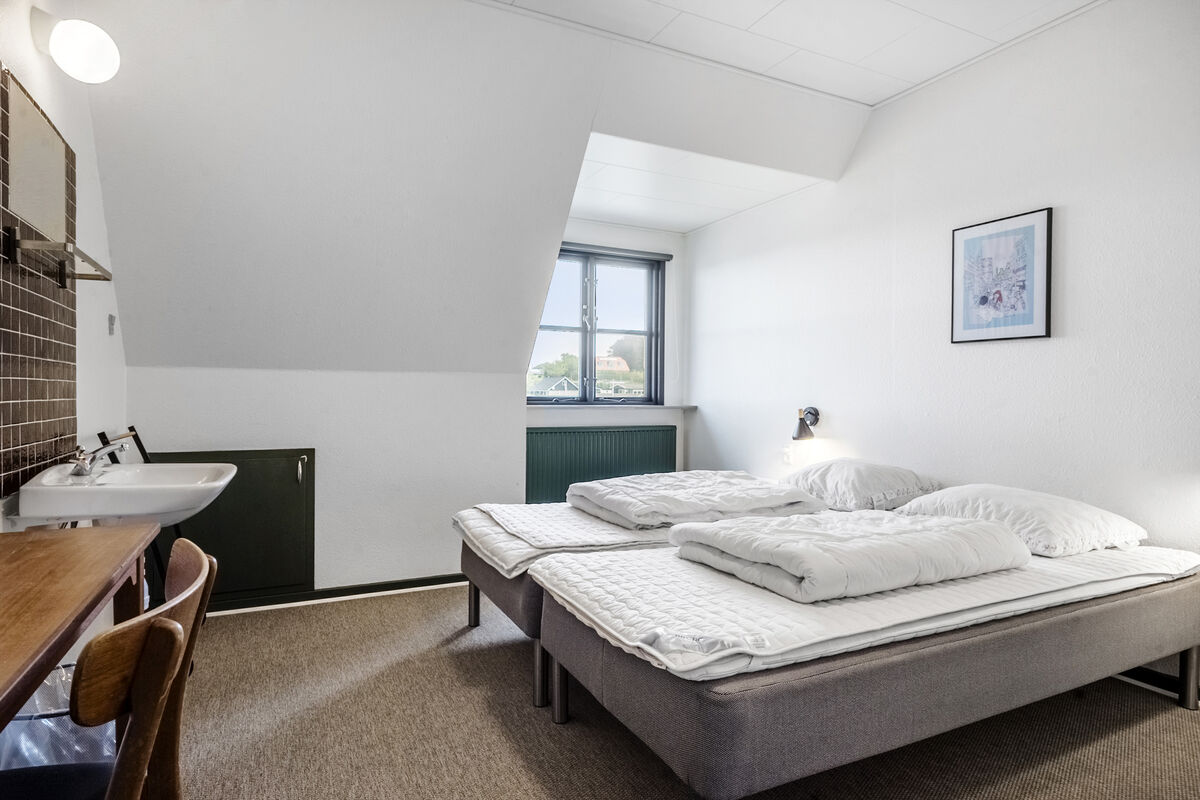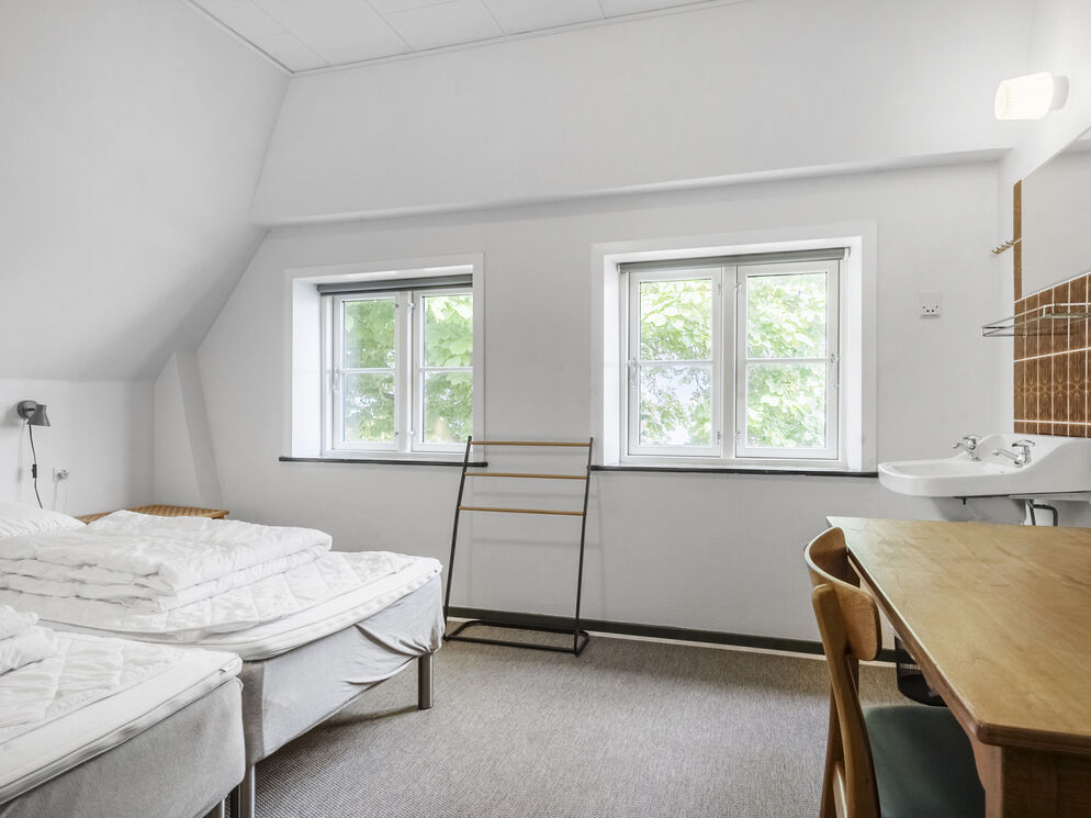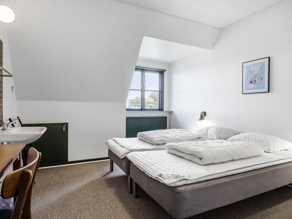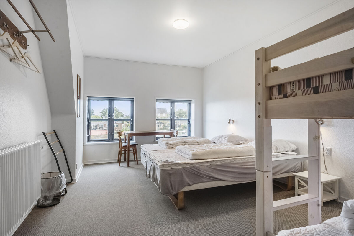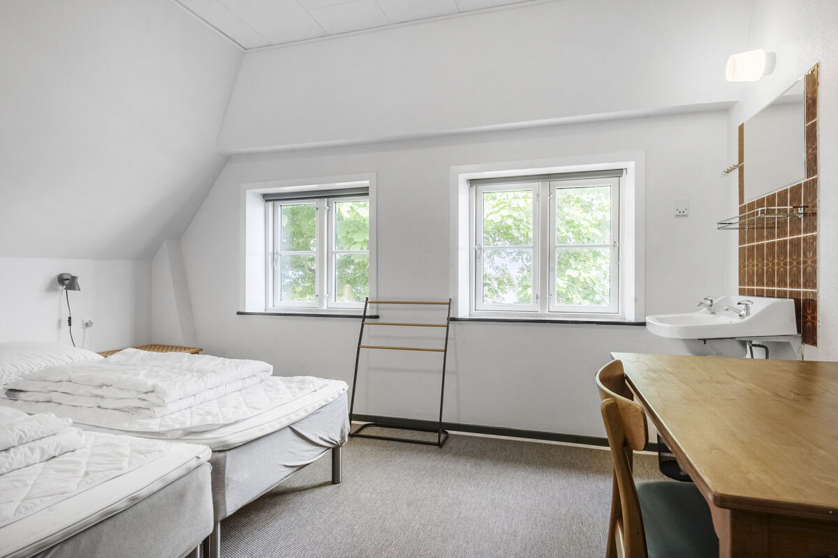 Feriehuset Brunsnæs Kro har 15 soveværelser, hvoraf de 5 af dem ligger i stueetagen – her finder du også 3 badeværelser samt 3 gæstetoiletter. De resterende 10 soverum ligger på 1. sal, hvor der også er 2 badeværelser.