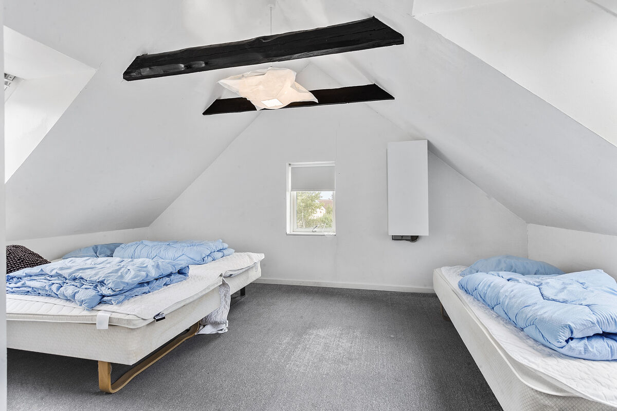 Spændende feriebolig i 2 etager renoveret i 2013 beliggende ud til markområder og den lille vej, som går fra Vejlby Fed til Båring Vig. Boligen er i stueetagen indrettet med en rummelig opholdsstue med brændeovn og spiseafdeling, havestue med ekstra spiseplads med vinduesparti ud mod den flisebelagte gårdsplads, moderne køkken og et stort badeværelse med spabad. På 1.salen ligger boligens 5 soverum og endnu et badeværelse. Den børnevenlige strand i Vejlby Fed ligger kun 1 km fra boligen.