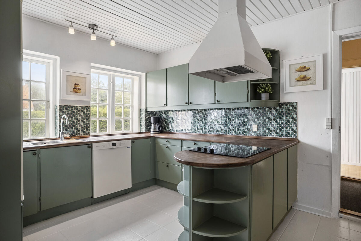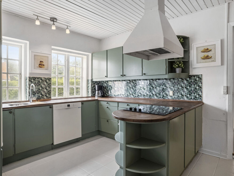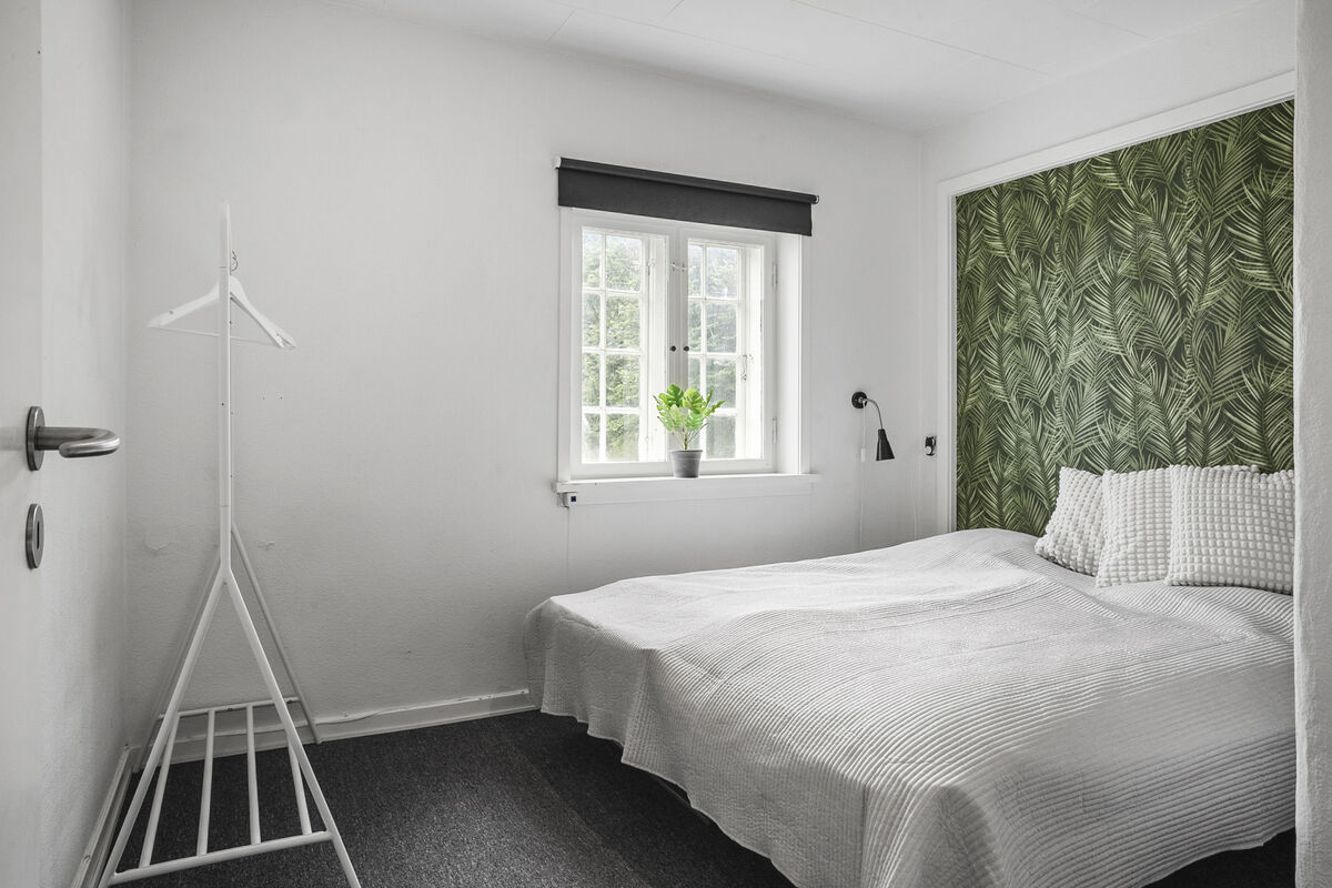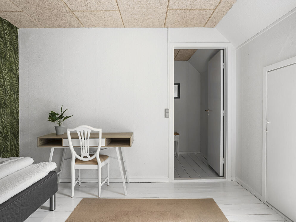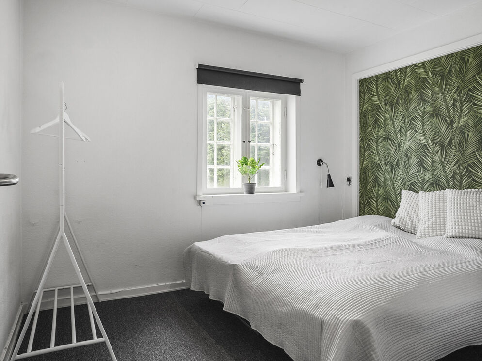 Den tidligere forvalterbolig til Hindemae Gods er i foråret 2025 blevet renoveret og er i dag en moderne bolig med plads til 13 overnattende gæster. Sovepladserne er fordelt i 6 dobbeltværelser og en madras i et gennemgangsværelse. Det flotte grønne køkken har komfur, køleskab og opvaskemaskine. I stuen finder du 2 sofagrupper og en brændeovn. I stueetagen er der et badeværelse med bruser.