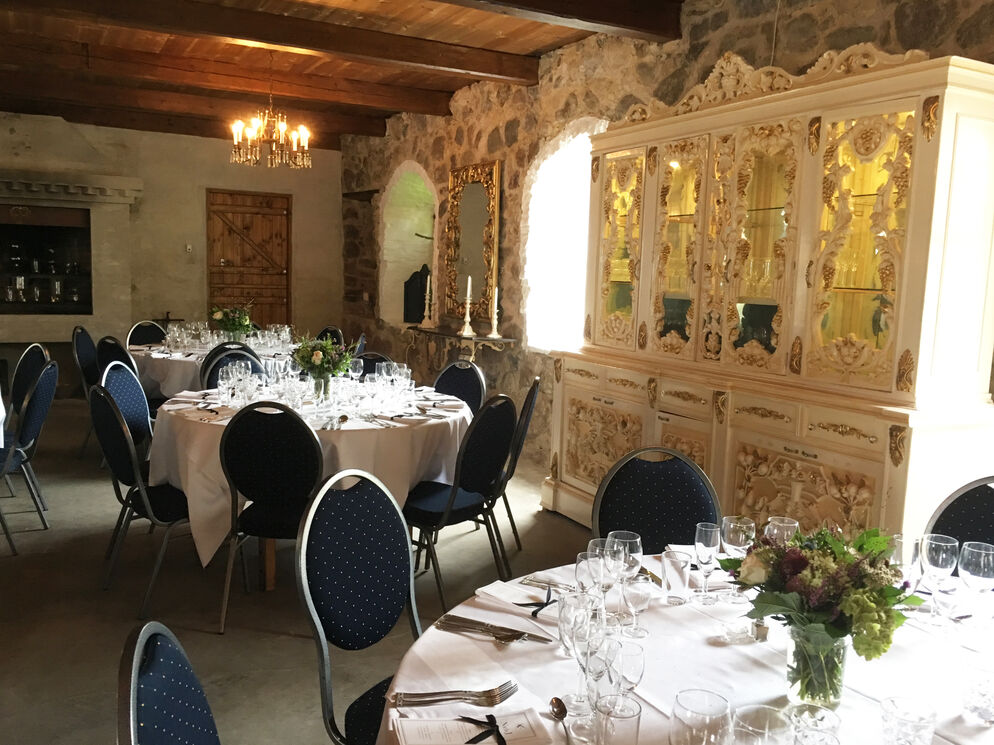 Netop Stenhuset, der blev renoveret og nyindrettet for et par år siden, gør et helt særligt indtryk på gæsterne – og kan også rumme mindre selskaber til spisning. Stenhuset er et fantastisk hus og rum, du ikke finder mange steder.