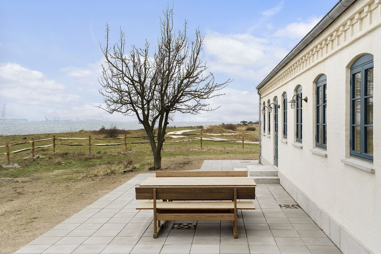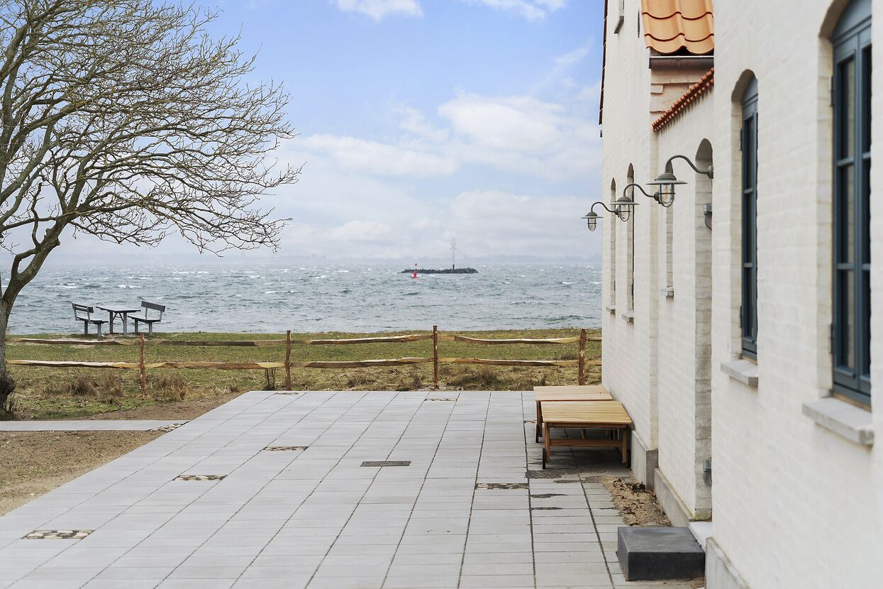 Dette feriehus til 10 personer er en del af Godset Hofmansgave i Otterup. Det ligger i vandkanten ved siden af Enebærodde Fyr og har udsigt til Lillebælt.