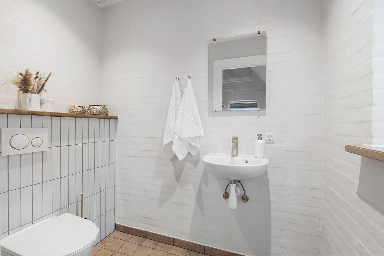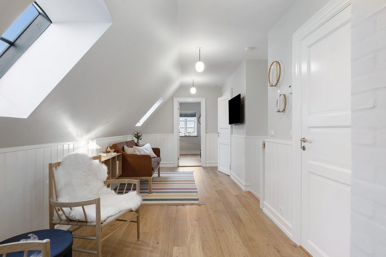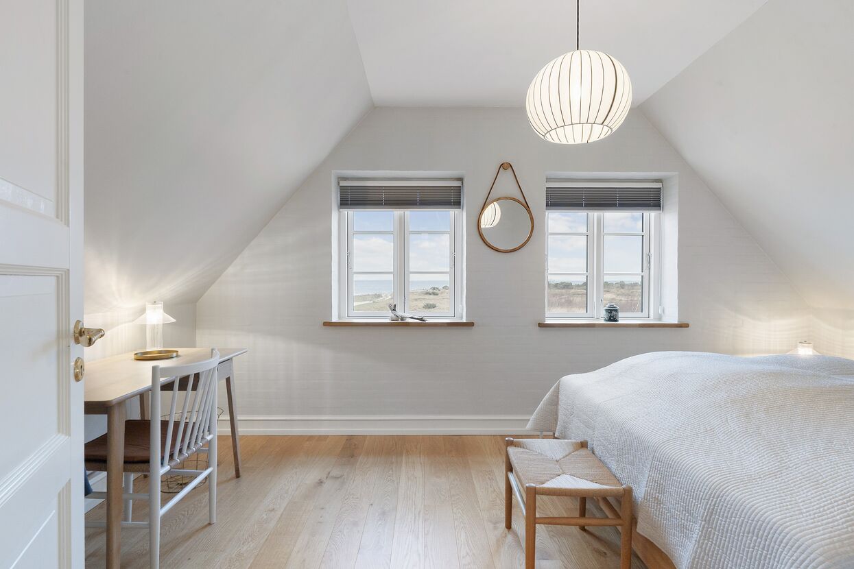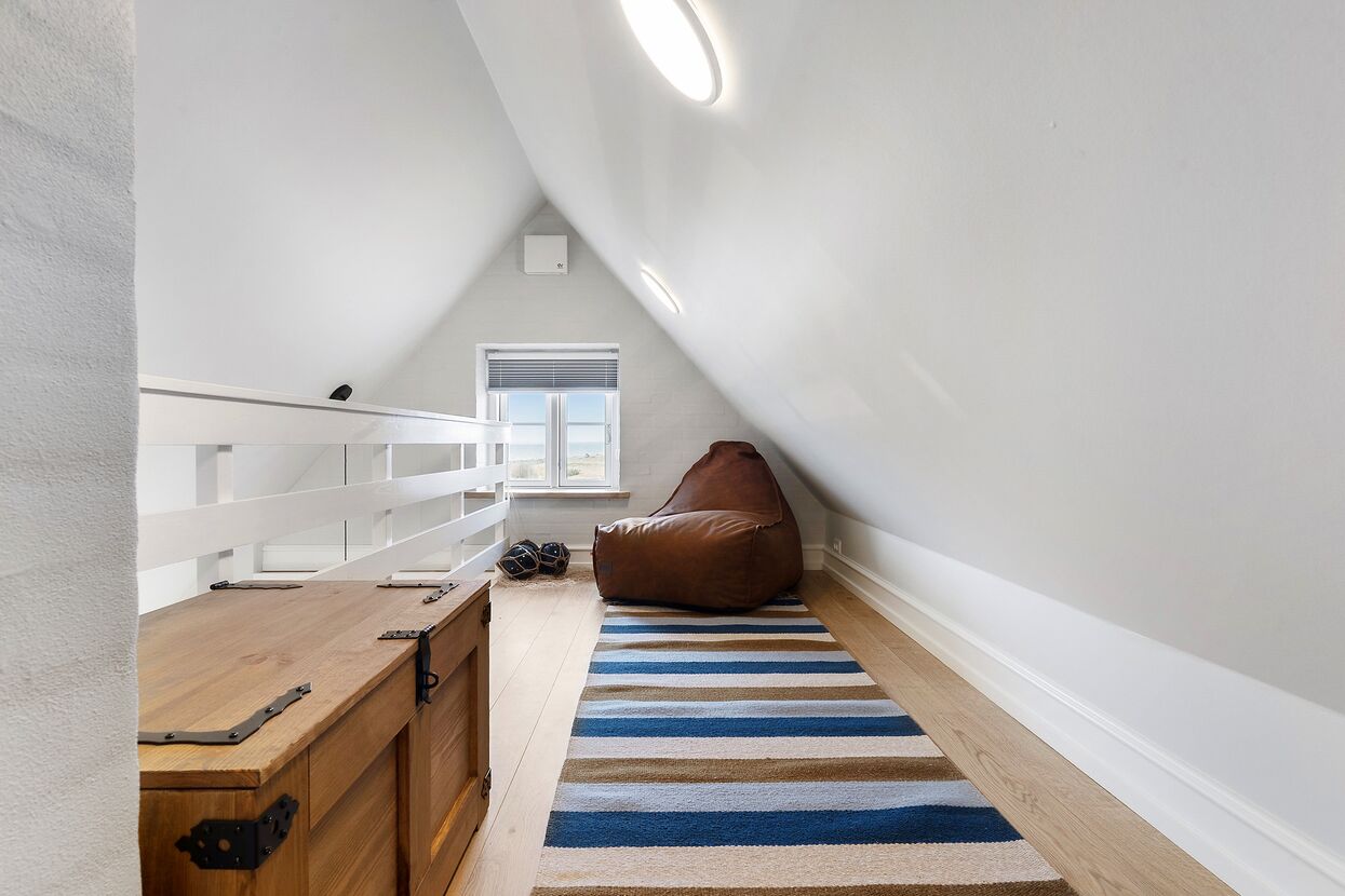 Hust blevet renoveret i 2025 og har 4 lyse soveværelser med hver en dobbeltseng - 2 i stueetagen og 2 på 1. sal. Der er yderligere 2 sovepladser på husets hems.