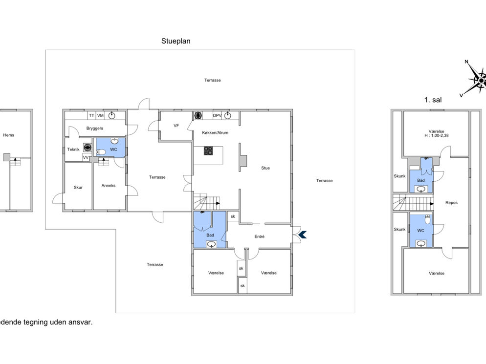 BEMÆRK: Der er ikke TV-kanaler tilgængelig i huset, men der kan streames fra egne tjenester via husets Chromecast