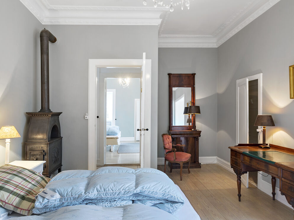 Indenfor bliver der fulgt op på de smukke udendørs indtryk, når du træder ind i de lyse og venlige lokaler, der danner rammen om din ferie. Værelserne er fordelt rundt på ejendommens etager, og hele familien føler sig godt tilpas på Vindeholme, hvor du både har egne værelser og hyggelige fællesarealer.